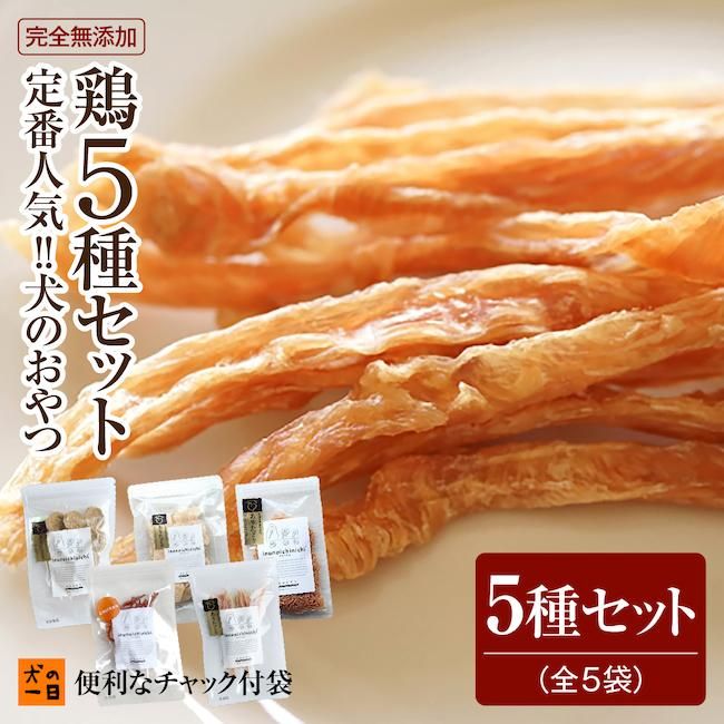国産添加物不使用、犬のおやつの専門店「犬の一日」で鶏を使った人気のおやつをセットにしました。