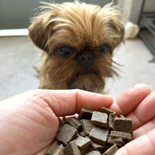 淡白な赤身と内臓などがひとつになったおやつ。 栄養たっぷり、香り豊かで嗜好性ばつぐんです! 小粒で食べやすく、小型犬にもオススメ。 お散歩用に、トレーニングに、ノーズワークにも最適です。